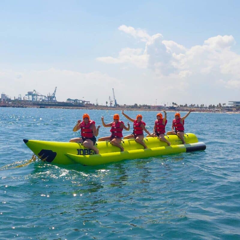 Si el plan es divertirte a más no poder en compañía de amigos o tu familia, la banana boat es la opción perfecta para ello. ¿Has montado este divertido plátano hinchable en las playas valencianas? Puede deslizarse a saltos, ir a buena velocidad y todo mundo la pasará genial. Es una gran opción para chicos y grandes en donde la adrenalina está presente y las carcajadas no pueden faltar. Y por supuesto, la banana boat está disponible en Alfa Náutica.